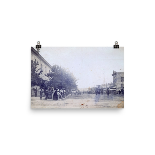 In 1897 Kerrville hosted singing clubs from around the Texas Hill Country in a Sangerfest. This parade of singers is marching down Mountain Street, which is now called Earl Garrett Street. These matte, museum-quality posters are printed in the USA on durable, archival paper.