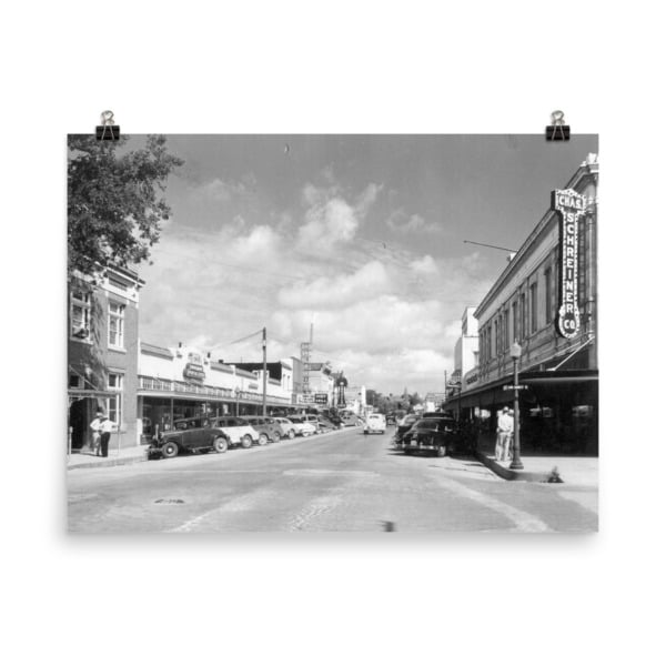 The 700 block of Water Street, as it appeared around 1950. These matte, museum-quality posters are printed in the USA on durable, archival paper.