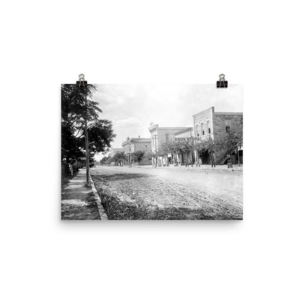 Water Street before automobiles. The Weston Building is in the center; Schreiner Company just to its right. These matte, museum-quality posters are printed in the USA on durable, archival paper.