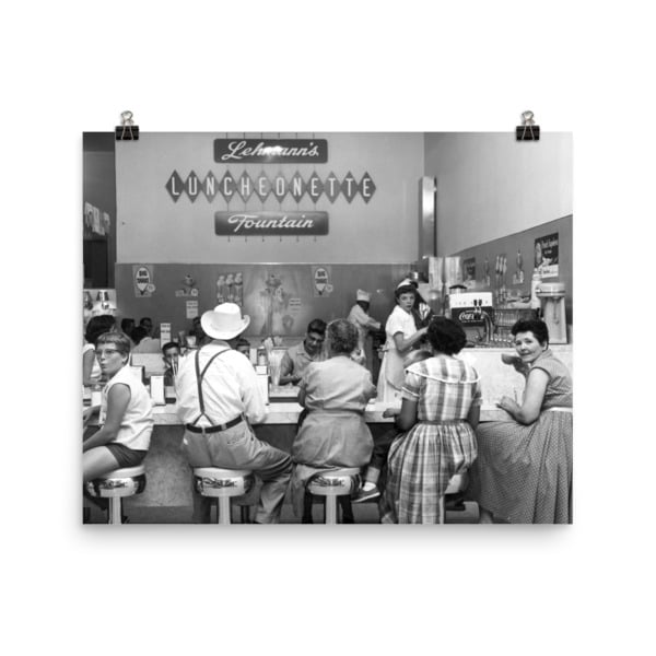Lehmann's Luncheonette was a popular place in Kerrville in the 1950s and 1960s. I have always loved the "Norman Rockwell" quality of this photograph. These matte, museum-quality posters are printed in the USA on durable, archival paper.