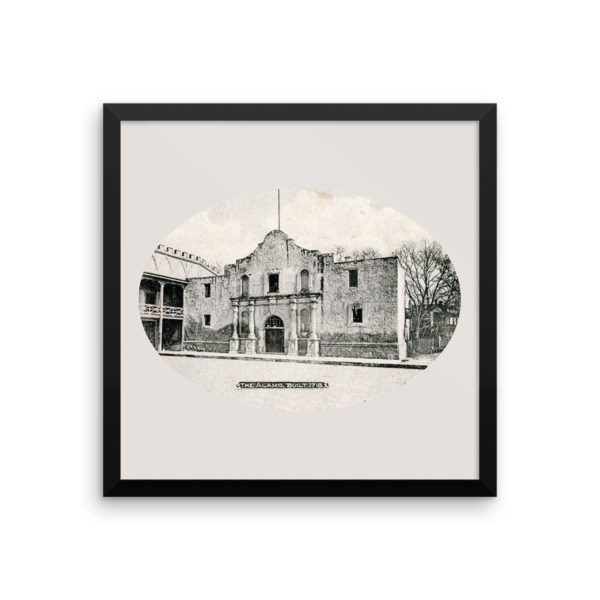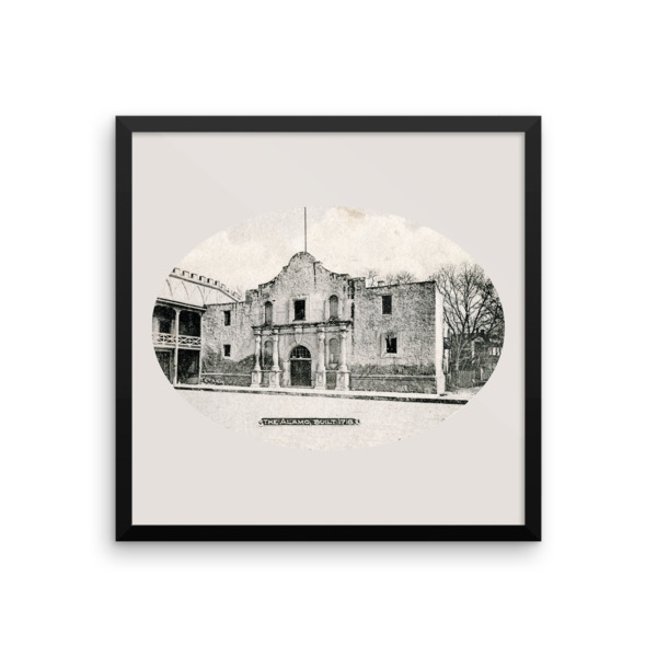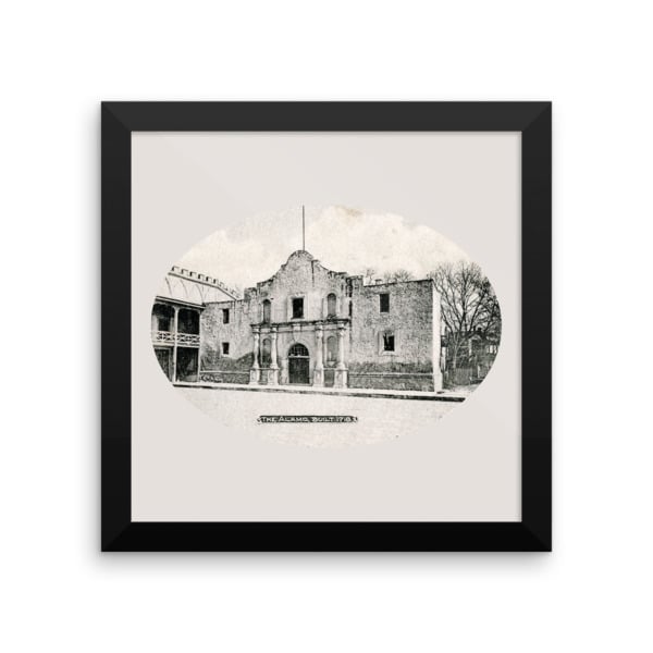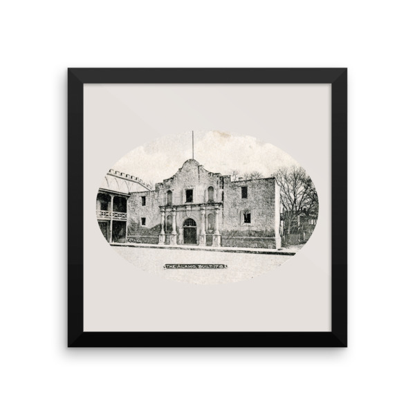 This is how the Alamo appeared around 1906, and it makes a tasteful addition to your home or office. The matte black frame adds an extra touch of class.